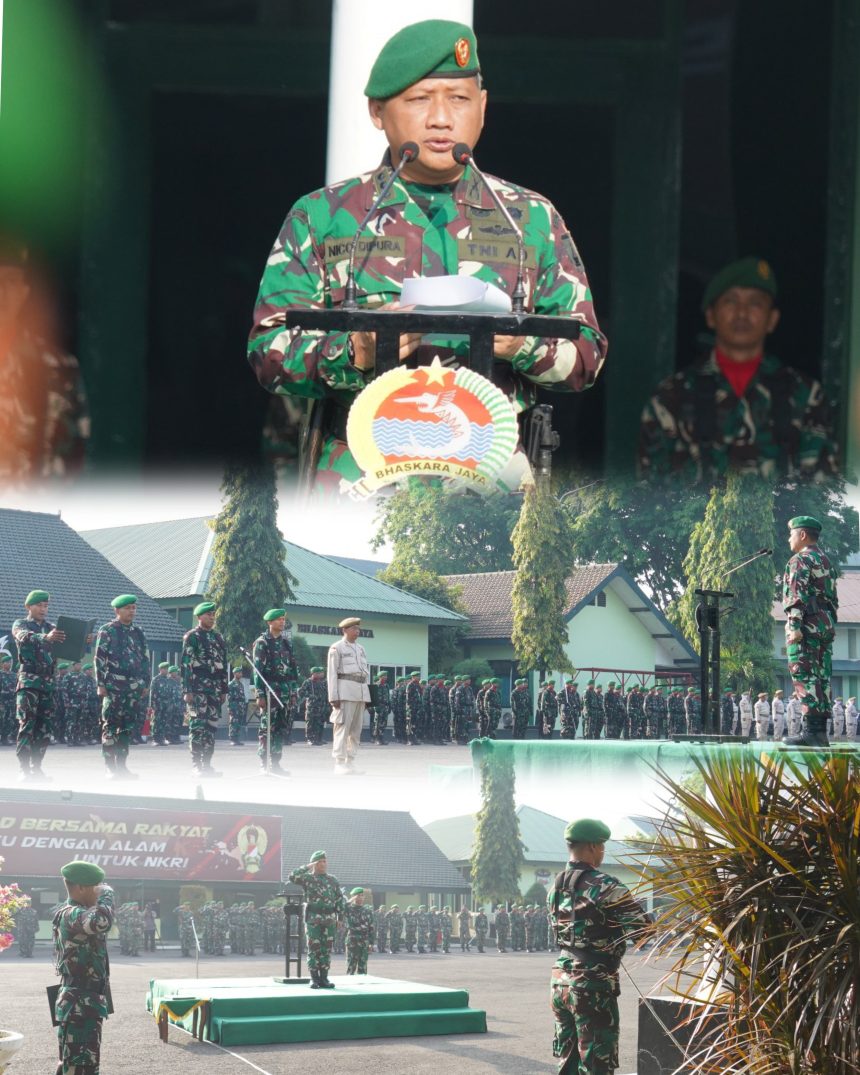SURABAYA – Media Indonesia Times | Korem 084/Bhaskara Jaya menggelar Upacara Bendera rutin dalam rangka memperingati tanggal 17 setiap bulannya di Lapangan Upacara Makorem, Jalan Ahmad Yani No. 1, Wonocolo, Surabaya, pada Rabu (17/9/2025). Bertindak sebagai Inspektur Upacara (Irup) adalah Kepala Staf Korem (Kasrem) 084/Bhaskara Jaya, Kolonel Inf Nico Reza H. Dipura, yang dalam kesempatan tersebut membacakan amanat dari Pangdam V/Brawijaya.