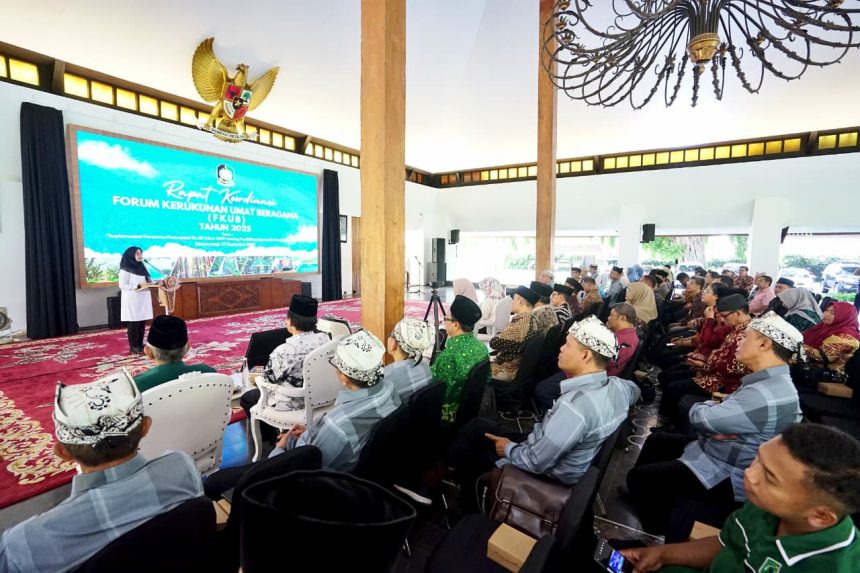 Banyuwangi – Media Indonesia Times| Bupati Banyuwangi Ipuk Fiestiandani mengajak para tokoh agama untuk terus menguatkan ketahanan keluarga serta menjaga kerukunan di tengah masyarakat. Hal tersebut disampaikan dalam Rapat Koordinasi Forum Kerukunan Umat Beragama (FKUB) Kabupaten Banyuwangi di Pendopo Shaba Swagata Blambangan, Sabtu (27/9/2025).