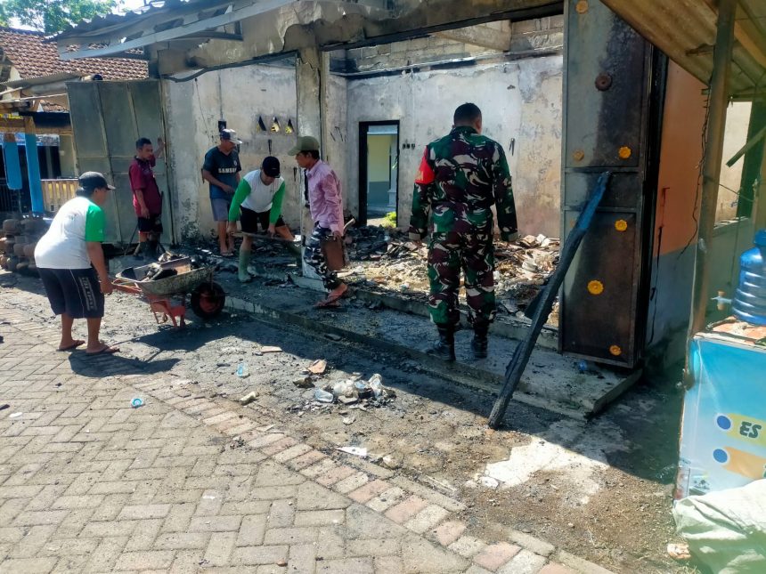 Babinsa Turut Serta dalam Pembersihan Pasca Kebakaran di Desa Kaligondo