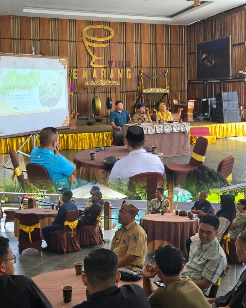 Sebagai narasumber, Moh. Bagus Salim, ST., dari PT Nusantara Segar Abadi—produsen pisang merek Sunpride—memberikan pelatihan teknis budidaya pisang Cavendish dengan standar kualitas ekspor.