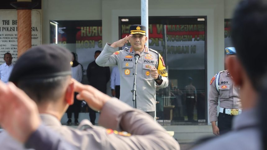 Apel ini dipimpin langsung oleh Kapolresta Banyuwangi Kombes Pol. Rama Samtama Putra, S.I.K., M.Si., M.H., dan dihadiri oleh Wakapolresta AKBP Teguh Priyo Wasono, S.I.K., beserta jajaran pejabat utama Polresta Banyuwangidan kapolsek Jajaran.