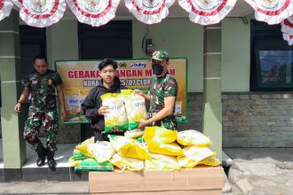 Anggota Koramil 0825/07 Cluring Laksanakan Pendampingan Gerakan Pangan Murah Bersama BULOG