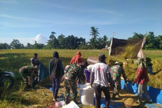 Satuan Koramil 0825/20 Songgon Kawal Percepatan Penyerapan Gabah Petani oleh BULOG